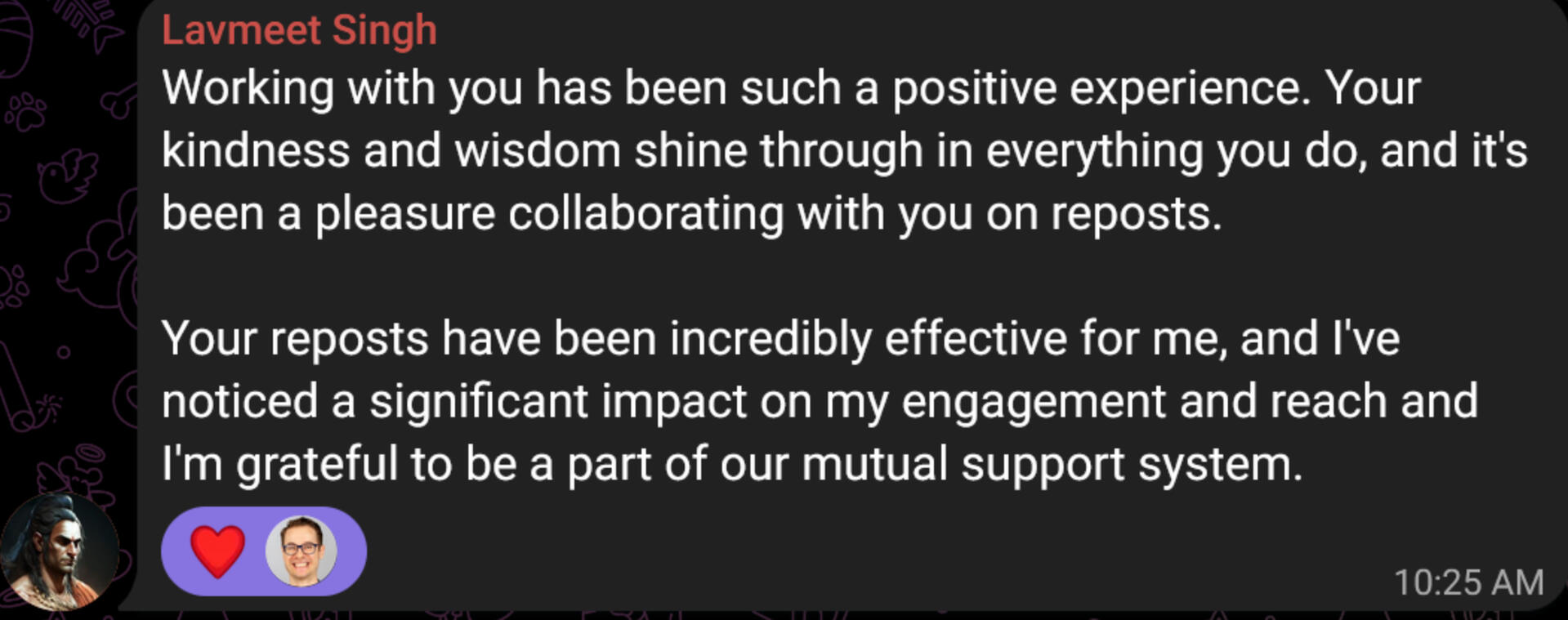 What will I learn from your service?You'll gain in-depth insights into leveraging π reposts for brand growth, including crafting repost-worthy content, engaging with influencers, and strategies for viral growth.Plus, real-life success stories and actionable tips from our personal experiences.