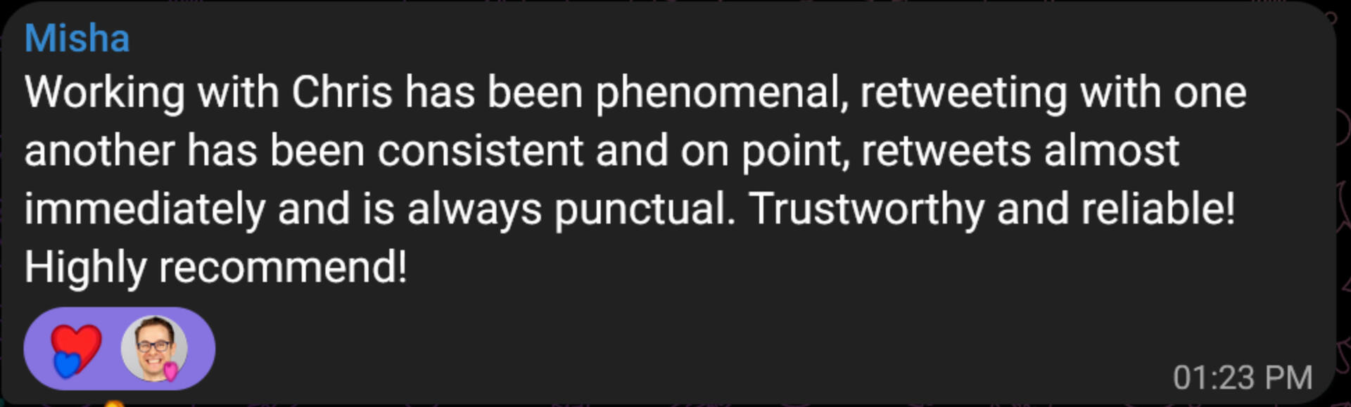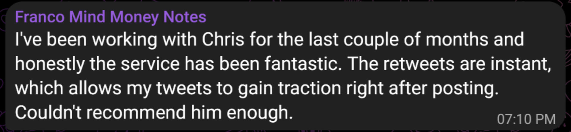 Are retweets the only strategy you use to grow my account? Does that mean I need to consistently produce content for retweeting?In addition to daily retweets, we also conduct regular shoutouts within our growth packages to promote your account within our network. This increases your visibility and attracts followers who resonate with your profile.This means you donβt need to tweet daily. Our comprehensive approach ensures steady growth without the pressure of constant content creation.
